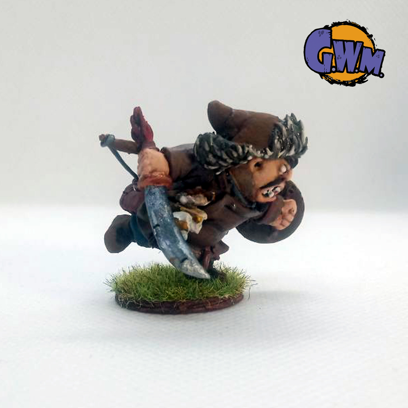 This detailed miniature depicts a fierce steppe nomad warrior, charging into battle with sword and shield at the ready. Sculpted with traditional attire and a dynamic, expressive pose, it captures the relentless energy of the nomadic fighter. The miniature requires partial assembly and comes supplied with a round base, making it ideal for tabletop role-playing games, wargames, or as a collectible piece for enthusiasts.